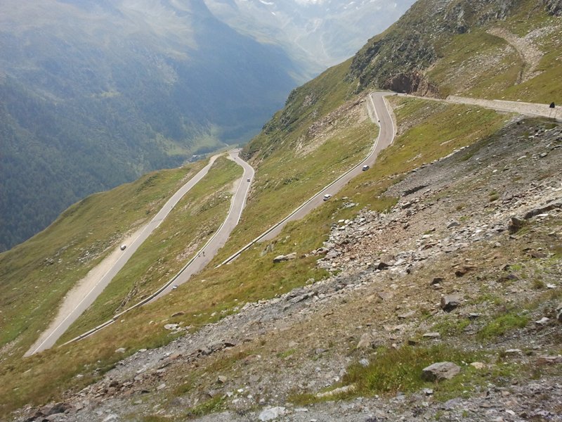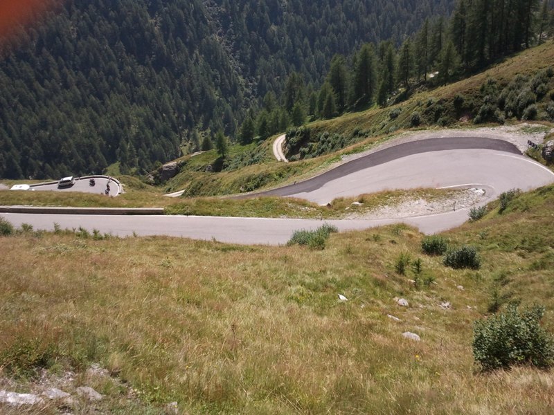 oggi l'epilogo più bello di questa vacanza,il passo rombo.partiti dall,Austria io e l'avv saliamo fino al casello e già lì le pendenze sono notevoli mai sotto il 10%.poi davanti a me si presenta uno dei panorami alpini trà i più belli il passo Rombo,sua maestà .si comincia a salire di brutto con longaroni mazzafiato,mai sotto il 9% 5 sono i tornanti che ci porteranno in vetta 2500 mt slm.Poi foto di rito sotto il cartello,vestizione e giù tra i panorami mai visti fino ad ora.