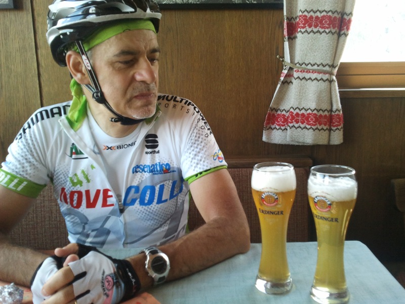 molti saranno i tornanti a picco del Rombo dal versante Italiano,per arrivare all primo ristoro della gara che tra breve faranno i miei compagni.piccola sosta e si risale,questa volta,le pendenze si fanno più seriee costanti,lunghi rettilinei,e molti tornanti,in somma senza respiro.il pezzo più bello è fuori dalla galleria,per intenderci la più lunga,quando si entra tutto buio,poi freddo a più non posso ma al dila un panorama mozzafiato.io oggi sul rombo ciò trovato il padrone che in soldoni vuol dire (ma sonato,ma è stato emozionante lo stesso.)con l'avv ritornati in austria classica birretta al rifugio e poi giu fino a casetta,dove preparavo un piccolo ristoro di yogurt,e frutta fresca.ora qualche foto di questa mia giornata con l'avv.