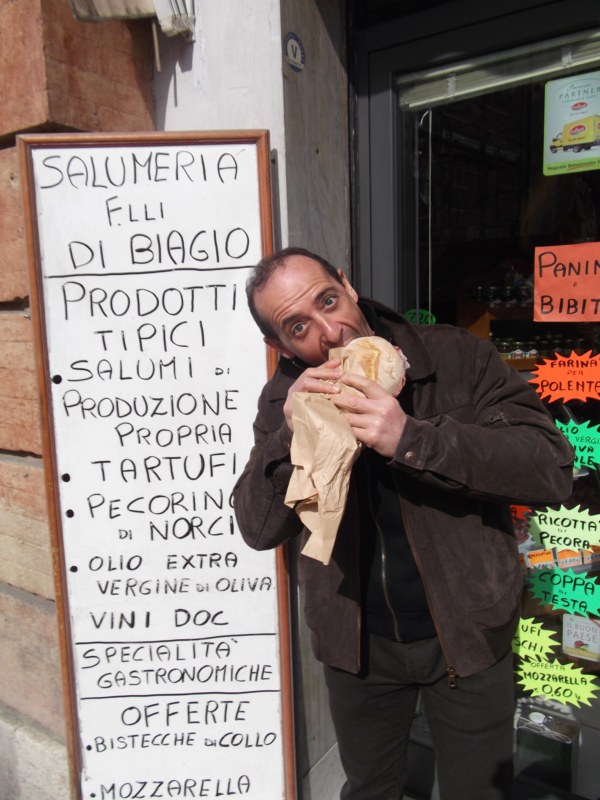 Il giorno dopo è invece monsieur Bannella detto temporaneamente "er ciambella" per gli addominai pronunciati, circonvoluti da poignee d'amour apprezzabilissimi, a fare la sua parte ciceronando a destra e a manca per calli e campielli mancando, colpevolmente, una norcineria con annessa panineria apprezzata più del biliardo del corso dove risiede "lu centru de lu munnu".