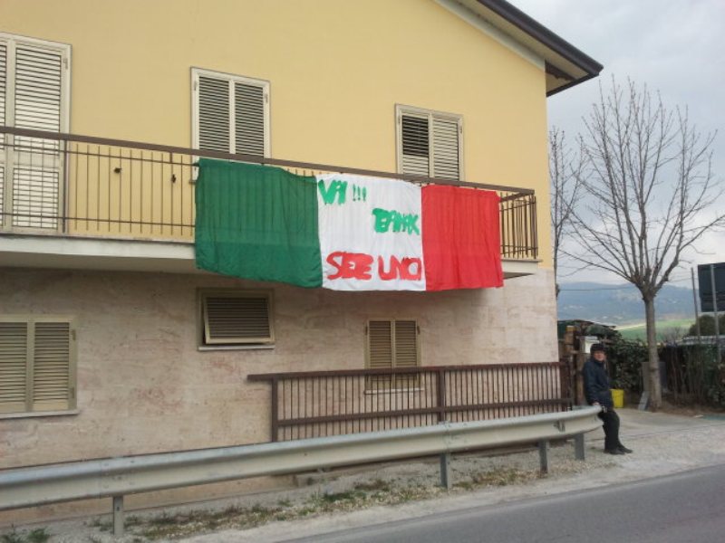 Il modulo riprendeva vita con soddisfazione di tutti e qualche foto agli striscioni disseminati qua e la da Cipollina ci faceva benevolmente attardare talchè tra una salita e l'altra rimanevamo soli sperduti nell'immenso paesaggio collinare di ulivi e vigneti.