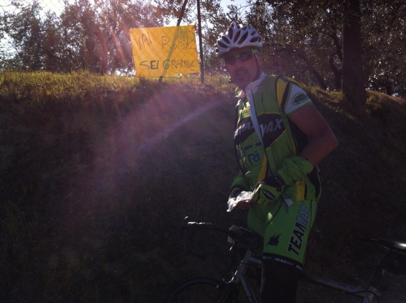 Nell'ultima salita di 2km sempre a doppia cifra ho visto 4 cartelloni gialli con scritte verdi nere e rosse confezionati da alex&cipo, che vordì...ero ancora lucido?