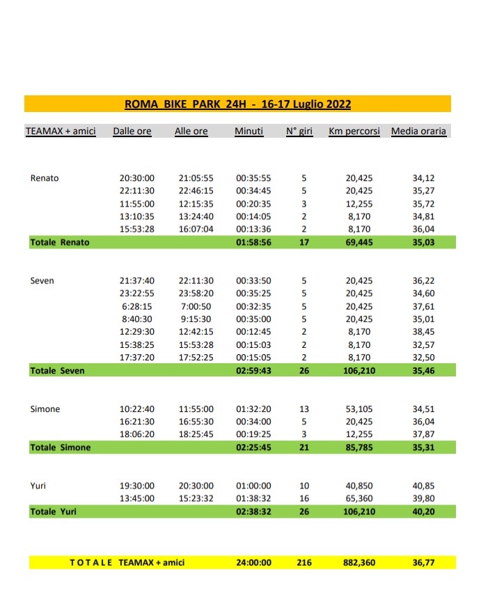 Grazie a Pinuccio che ha scaricato e riorganizzato la nostra 24h, di seguito i dettagli di tutto il team