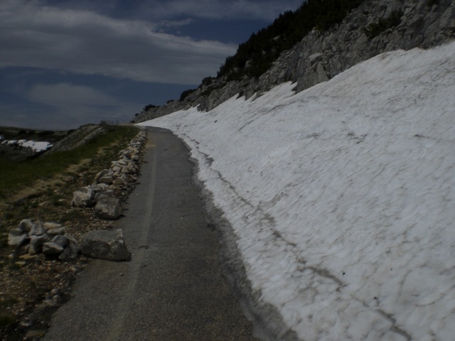 Ai meno 2 km la strada è interrotta da un muro di neve, che noi diligentemente abbiamo scalato...poi ultimo km con raffiche di vento importanti