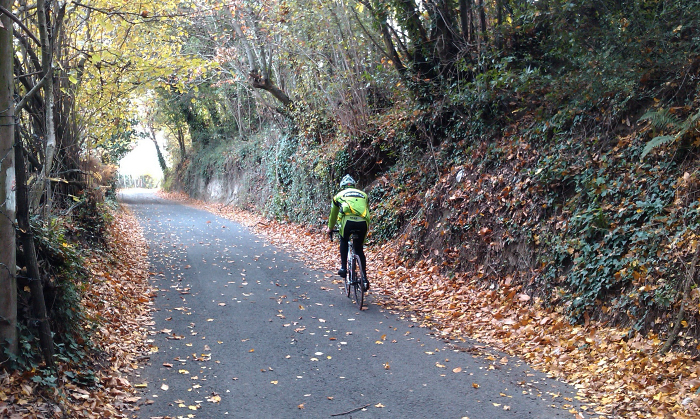 All'altezza dell'autodromo di Vallelunga prendevamo la deviazione a dx e quindi percorrevamo il sentiero alternativo alla salita principale di Campagnano; molto bello: stretto, con fondo stradale buono e "coreografico" con i bordi pieni di foglie morte.