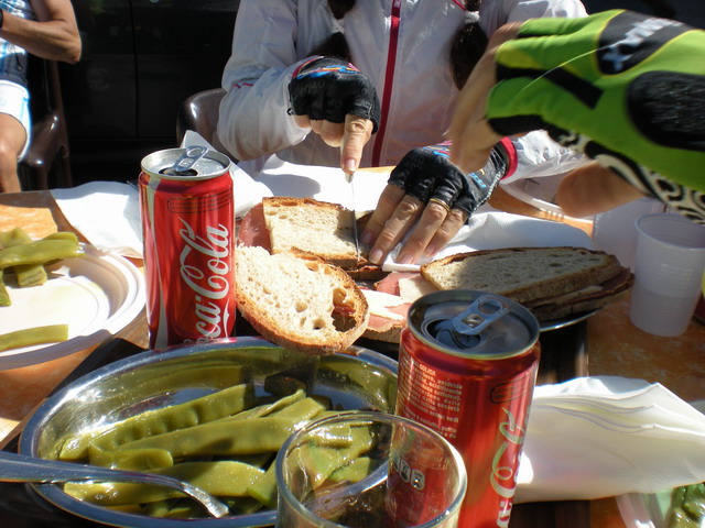 Si formavano i gruppetti ma allo scollinamento tutti intorno ad un tavolo nel piazzale, apparecchiato x noi con panini spek e parmigiano, fagiolini, coca cola..solo le foto possono rendere l'idea, anche Gianluca con un contratto pronto da prof. ha apprezzato e gradito