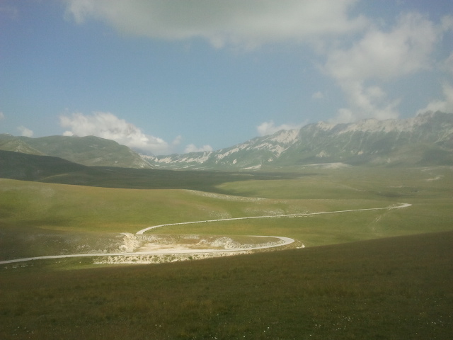 Una giornata che difficilmente dimenticherò per tante e tante cose le quali entreranno di prepotenza (come al solito!) in quella parte del cuore riservata a pochi! Le risate a crepapelle che lasciano posto ad un silenzio contemplativo di fronte a quelle che non possono non chiamarsi che "creazioni divine": laghi di montagna, piane incastonate in corone di montagne. E poi il passare per Onna, Paganica e i tanti paeselli... si piccoli... ma con quella grande voglia di rinascere di nuovo dopo quel dramma ormai "ignobilmente" dimenticato da tutti noi!!! che emozioni!!! e ancora il raggiungimento della cima, quasi poter a toccare il cielo con un dito, Non prima di aver effettuato soste nella piana più bella che io abbia mai visto in un rifugio che come biglietto da visita non aveva un pezzo di carta ma un tagliere di legno con sopra posizionato:pizza, pane, culatello,prosciutto,salame di fegato,salame normale, ricotta con miele e il marcetto (un gorgonzola spalmabile con un gusto incredibile)! Ragazzi io potrei stare qui anche per ore a scrivere di una giornata come quella di ieri ma sono sicuro di non renderle merito! Per provare quello che ho provato io ieri bisogna solo viverle E BASTA!! Perché sono sicuro che è' lo stesso pensiero che i miei 6 compagni di ieri avranno vissuto. TUTTI INSIEME FINO ALLA CIMA! Dopo una giornata così si crea per forza un legame tra i compagni di spedizione... Ma questo almeno per me.. È' cosa nota... In quanto facevo le stesse identiche cose in mare e per mare!! Nient altro e' che il piacere della scoperta e dello stare insieme fine a se stesso! La voglia assieme di meravigliarsi e di stupirsi condividendo le stesse emozioni!