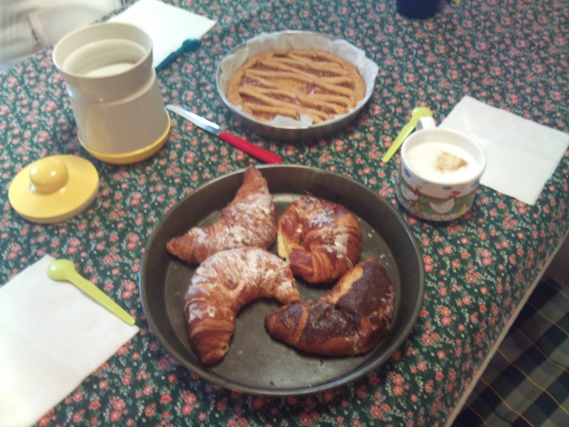 Era da un po’ di giorni che avevo in testa di fare il Terminillo da Leonessa ma l’idea di mettere la bici in macchina mi frenava un po’. Sabato pomeriggio telefono a Barby (sapevo che i coniugi erano a s.clemente) e ci mettiamo d’accordo inizialmente per vederci la domenica mattina e successivamente per arrivare direttamente la sera.L’arrivo e’ stato subito traumatico passeggiata a Leonessa e dopo una rapida occhiata alla piazza in festa ci siamo immediatamente diretti in pasticceria dove abbiamo preso dei cornetti alla crema ed al cioccolato ancora caldi…… ;) ovviamente anche per la colazione della mattina successiva…. :mrgreen: Comunque il mattino seguente decidiamo di attaccare subito il Terminillo (aho! Chi mena prima mena due volte no!!) che al primo sguardo si mostrava avvolto da nubi poco simpatiche ma oggi questo era solo un piccolo dettaglio…. :lol: