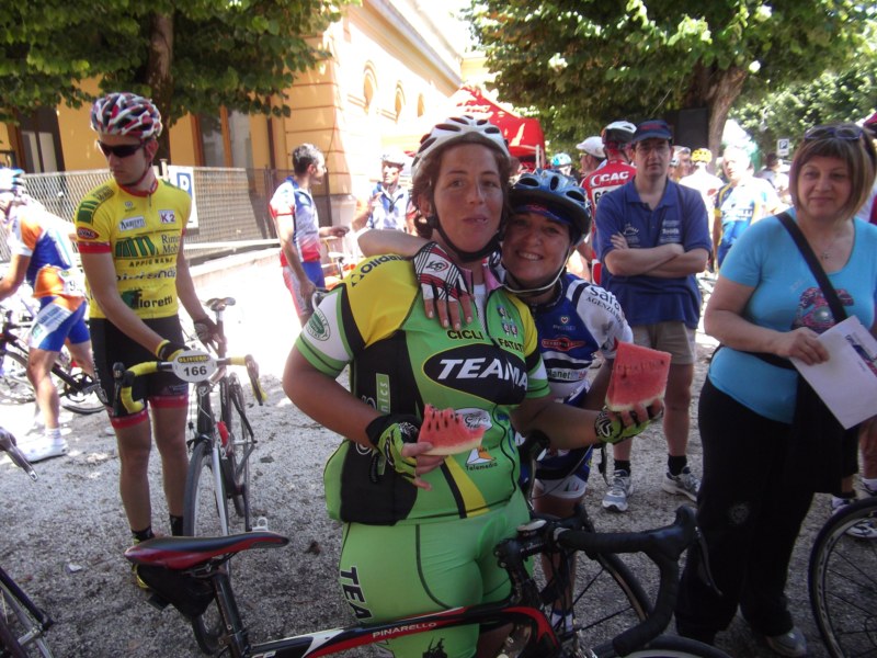 Facciamo la salita di Seggio , poi Pievetorina e aspettiamo che Tiziana arrivi dalla discesa di Macereto. Arriva con il suo amico Marco e insieme di buon Passo verso l'arrivo. Contenti e rinfrescati da delle fette di cocomero , salutiamo i Ns amici e da li si risale verso il Lago di Caccamo per poi arrivare da Sfercia Verso Muccia , si Gira verso Camerino 8-9 km al 6-7% ...Si Scende da Morro poi Serravalle di Chienti , Taverne e poi Colfiorito, arriviamo alla macchina ..
