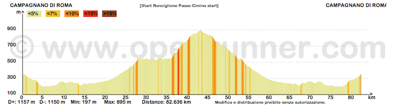 Cassia Bis-Centro Lidia-Ronciglione GPM-Lago di Vico- Passo Cimino GPM- Cimina a scendere Cassia Bis-Start crono.