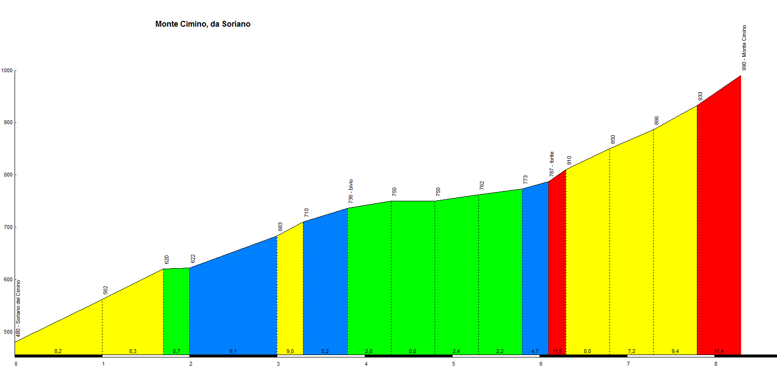 SALITA: Tratto: Soriano- Faggeta 8,5km al 6%Max 26’12’’ 19,5kmh 74rpm 1.170vam – 4,54watt x kg
