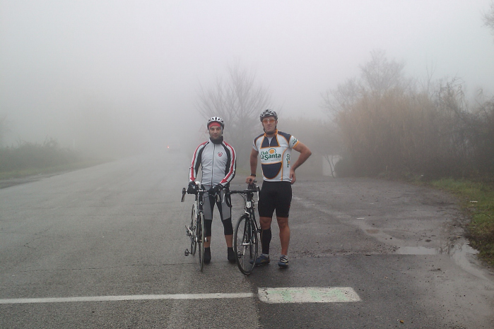 Andatura chiacchiera fino al punto più elevato della Campagnanese dove, complice il nebbione (vedi foto