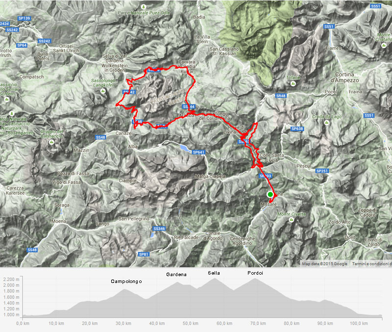 Alle 14.45 di nuovo ad Alleghe con 107km e 2.500m. di disl.