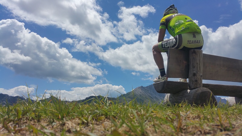 Discesa nel bosco. Fino al lago Sauris e da lì, sempre con il naso all'insú, a sinistra verso Sauris di sotto e Sauris di sopra. E non era finita lì. In uno scenario da paura siamo saliti fino a Casera Razzo (ricordate la panchina di Emiliano?). Guardo il computer e leggo: km 40 percorsi, dislivello 2.000 metri :o :o . Mi fermo sulla panchina resa famosa da Emy e mi faccio un selfie citando il Nostro ospite. Da lì in poi solo discesa e pianura fino a casa (60km!!!). Ancora una magia. Non credo che Froome è Contador, passando a Casera Razzo, abbiamo avuto modo di guardarsi intorno per godere della bellezza che li circondava. Peccato per loro ;) ;) il tutto con la sensazione di essere all'interno di un reality. Il filmato di Sky che andrà in onda a Luglio su Bikechannel, sono certo che sarà strepitoso. Preparatevi.