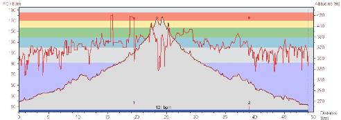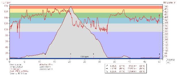 50 km, media 24,6, dislivello 515 m, bpm 139/172.