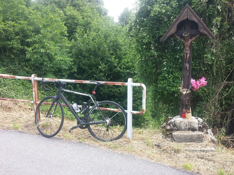 Non era chiaro quale fosse il giro. Il meteo incerto consigliava di girare intorno senza allontanarsi troppo e noi siamo rimasti a letto qualche minuto di troppo. Morale, la compagnia se ne va e io e Michele usciamo senza una meta ma con un pensiero fisso, inconfessato l’uno all’altro ! ! . Stranamente le bici si dirigono a nord, verso l’Austria, e dopo pochi km il pensiero fisso scarta a sinistra e vediamo il cartello ‘Monte Zoncolan!!! Un’occhiata muta e ci siamo trovati subito in salita. E’ il versante più facile dei tre ma sempre catalogata come salita ‘Hors Categorie’, 13,3 Km all’8,7% medio !!!! Saliamo di buon passo per i primi 10 km con lo stambecco-Michi che conta la distanza dalla vetta facendo affidamento sulla segnaletica stradale che recita: Zoncolan 10 Km. Peccato che dopo l’abitato di Zoncolan comincino i terribili ultimi 3 Km fino alla sella, con pendenze che arrivano oltre il 20% !!!!!. Fatica allo stato puro. Le gambe non girano per inerzia ed ogni pedalata te la devi conquistare con il cuore i muscoli, la testa!!! Ad un km dalla vetta ci passa una specie di ‘criceto’ quasi invisibile, senza casco e che si rivolge a noi in inglese per sapere quanto mancasse alla vetta. Gli dico che manca 1Km e lui subito sparisce, bofonchiando qualcosa che non ho capito !!! Noi stringiamo i denti e conquistiamo la vetta tenendoci per mano (che ve lo dico a fa!!!). Scendiamo dalla bici e ritroviamo il ‘criceto’ che in realtà si chiama Andrew Brannan, ha 53 anni, abita a Swansea nel Galles e si affretta a ringraziarmi (di che?) ed a chiedermi l’amicizia su Strava (per la cronaca, è ridisceso a Sutrio, ha scavallato Ravascletto e si è rifatto lo Zoncolan pure da Ovaro!!!! ). Ora siamo amici su Strava!!. Dopo essere tornati a Sutrio, ci siamo fermati per un caffè con l’intenzione di tornarcene in albergo, paghi dell’impresa. Squilla il Telefono! E’ il Prof che, lasciata la compagnia, si è ritrovato, da solo, in cima a una qualche salita che nemmeno lui sa come ci è arrivato ma è ansioso di comunicarci che si trova in un posto stupendo e che dobbiamo raggiungerlo!!!! Ma porc…!!!! Totale, altri 30 Km e 700 mt di salita e poi, in tre, come ci capita spesso da qualche tempo (!) facciamo ritorno ad Arta Terme giusto in tempo per evitare il diluvio universale !!!!!!