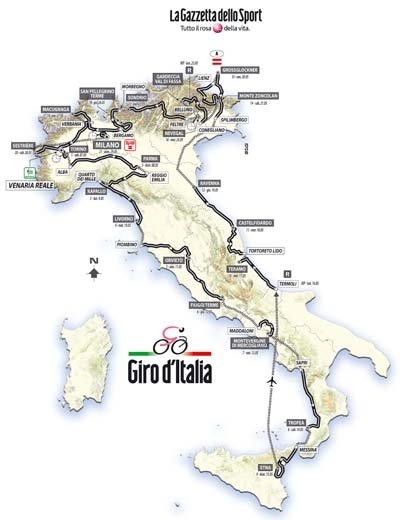 dopo la bellissima news, che il prox tour de france ripassa in italia, piu precisamente pinerolo, oggi si scopriranno le tappe del prox giro d'italia.
