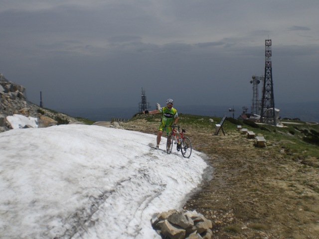Ai meno 2 km la strada è interrotta da un muro di neve, che noi diligentemente abbiamo scalato...poi ultimo km con raffiche di vento importanti