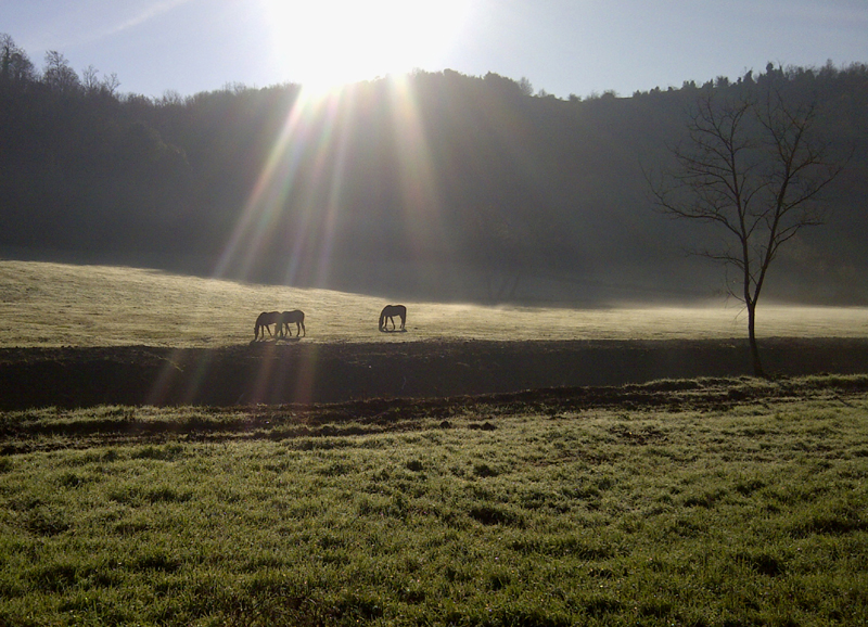 Allego anche una foto che ho scattato questa mattina, sempre con il cellulare, mentre scendevamo da S. Maria di Galeria e i campi si stavano "sbrinando"