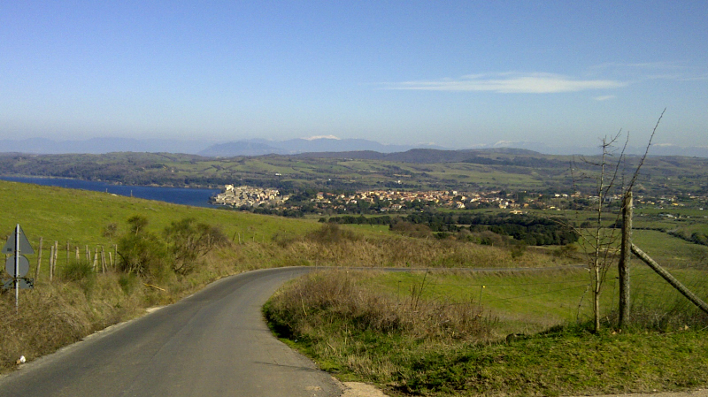 Vento freddo e teso da nord-est, praticamente sempre in faccia fino ad Anguillara, dove Andrea ed Emilio ci lasciavano per tornare indietro; io e Robo continuavamo sempre col ventaccio in faccia :evil: fino a Trevignano e poi salivamo a Rocca Romana (che controvento m'è sembrata il Giau, ma forse era colpa dell'influenza :| ). Meglio da Sutri a Oriolo, poi Manziana, Vigna di Valle e la salita della Croce di Ferro (via dei monti) con spettacolare scollinamento con vista da un lato su Anguillara (con sfondo del Terminillo innevato) e dall'altro il mare.