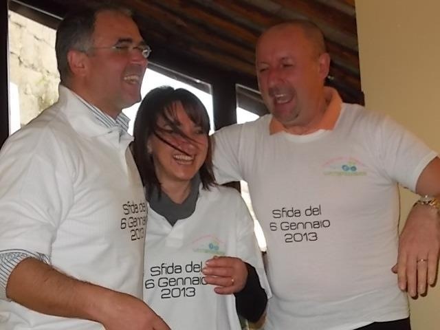 ci sono i due sfidanti che vengono letteralmente istruiti sulle fughe, sul momento in cui fare la volata...mamma miaaaa come se gioca...ahahaha è divertentissimo, alla fine il nostro Esercito non ha colto l'arrivo, si è segato....per istruzioni sbagliate....perchè stava sonato....ahahahaha ma che ce frega della volata...al ristorante erano tutti pimpanti con una bisteccona da mezzo kg davanti, bicchieri di montepulciano a go go e una moretta ALTA 15 CM....AHAHAHAHAH...e signore compagne dei ciclisti made in tuscia erano caciarose e divertenti anche loro....hihihihihih...coretti e schiamazzi per rubarsi a vicenda prima i contorni e poi le fette di torta...ahahahaha sono stata veramente bene, il ristorante era un posticino davvero bello....tanta allegria. GRAZIE.