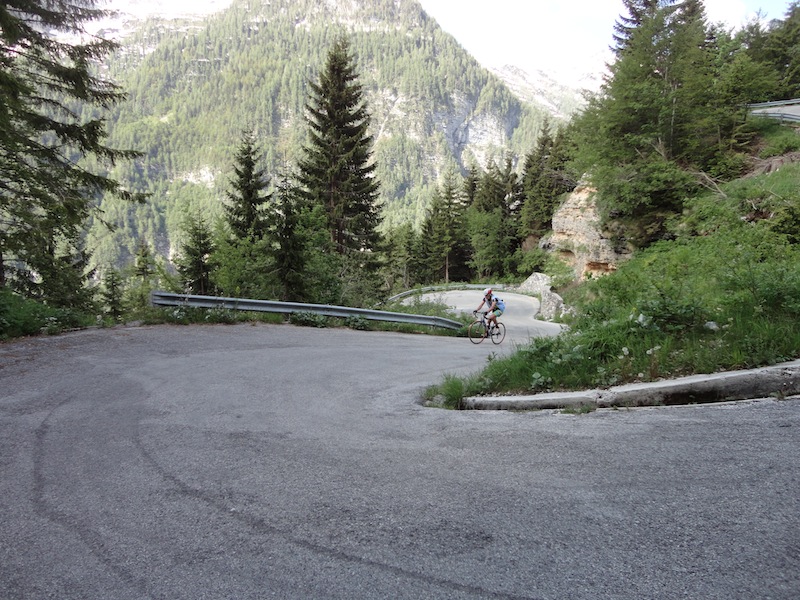 Oggi volevo dare qualcosa di speciale a Pino prima che partisse… domani scende giù in treno mentre io rimango ancora qui! Ero indeciso tra le sorgenti del Piave sopra Cima Sappada e San Simeone.. Ho scelto la seconda.. Montagna famosa per tanti motivi.. I due principali: e' stato il punto preciso del epicentro del terremoto in Friuli e montagna storica usata come vera e propria torretta d'avanguardia per l'esercito durante la guerra in quanto in un punto veramente strategico… si ha sotto controllo tantissimo terreno.. (come potete vedere dalla foto). La salita e' di quelle da fare… 10 Gallerie… 28 tornanti.. per andare da 300mt a 1200mt in 10 km… regolare che più' regolare non si può'.. fatta dai militari in cemento spianato ancora facile e scorrevole da percorrere.. Molto meglio delle strade di Roma per capirci… arriva in un punto dove fermarsi e' d'obbligo… Pino spero d'averti fatto un bell ultimo regalo!