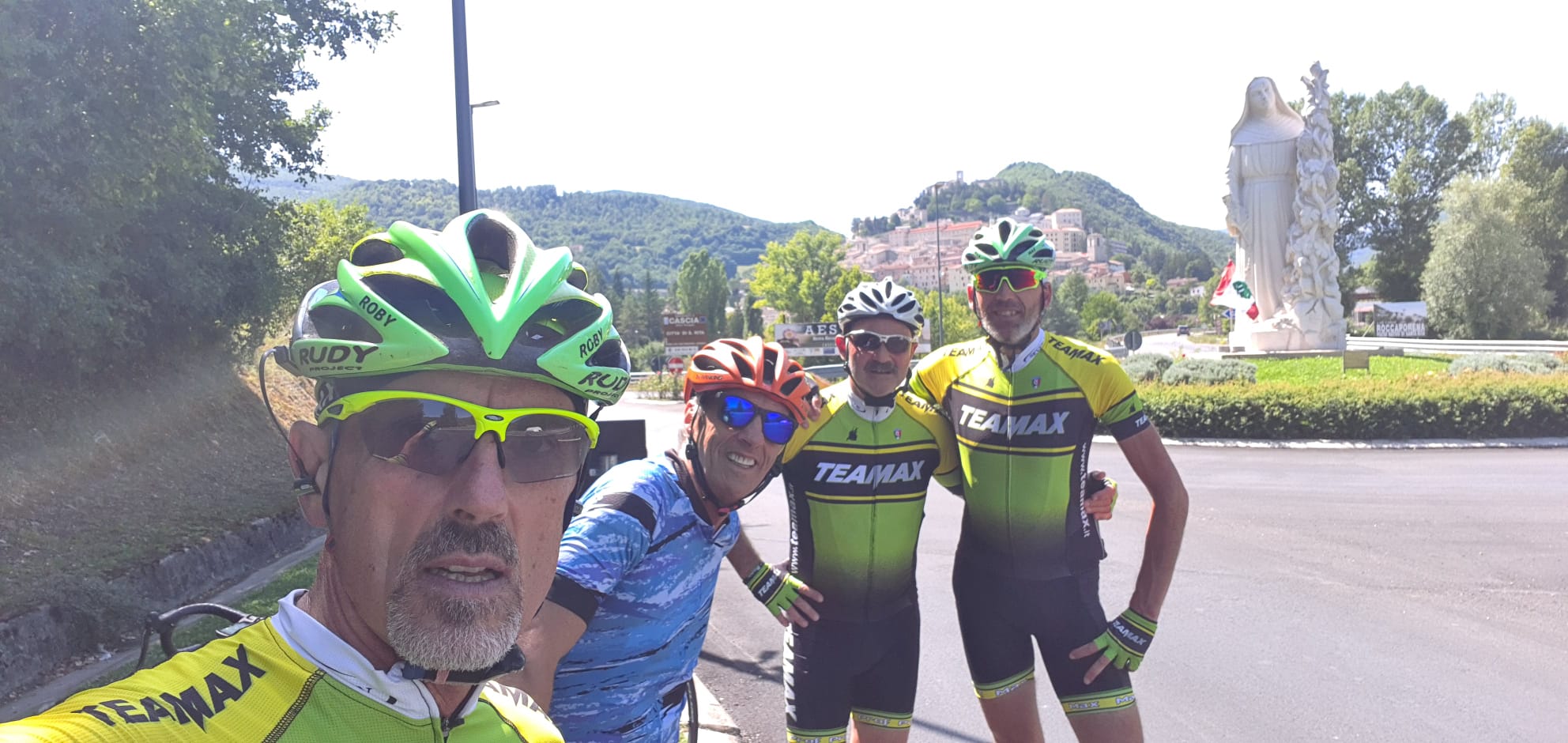 Una magnifica giornata insieme con Roby, Prof e Sergio Ci siamo visti alle 8.30 ad Albaneto, dopo un caffettino, il dolcetto e il richiamino, siamo partiti in bici Il Prof mi chiedeva di passare x Norcia e Cascia e io gli ho disegnato un giretto con tratti inediti x le loro ruote Sempre di chiacchiera e chiappa chiappa, ci siamo avviati verso Chiavano-Opagna dove incontravamo sulla nostra strada Paolo, Barbara, Gigi e i loro ragazzi, con loro x un'oretta poi le nostre strawe prendevano lidi diversi, noi verso Norcia e loro verso casa Così lunga discesa x 20km dall'antennine al centro di Norcia. dove è sempre vivo il ricordo dell'ultimo sisma Sosta ristoro lungo l'area chioschi fuori le mura, panino prociutto e formaggio, poi giro x il centro e via verso Cascia Siamo saliti x Ospedaletto, 6km all'8% x poi scendere x 10km fino a Cascia Seconda sosta ristoro, stavolta gelato, coca cola e caffè Con comodo da Cascia siamo saliti prima x 6km, poi dopo 6 di discesa, x 12km di falsopiano in salita fino a Leonessa Da li 10km verso Albaneto, la metà in discesa e l'altra in salita Il bello è venuto dopo, dove Manu aveva attrezzato il primo ristoro a base di prociutto melone e mozzarelle di bufala, tutte del luogo Poi dopo una bella doccia e una rilassante chiacchierata in giardino sdraiati su comodi lettini, abbiamo dato fuoco alle polveri, creando sul barbeque una spianata di brace da poter cucinare un maiale intero Alla fine cena a base di carne e non solo Che dire, sentirsi fra amici in family, è un grande privileggio Grazie amici miei x la bellissima giornata Ci si rivede la prox settimana intorno casa