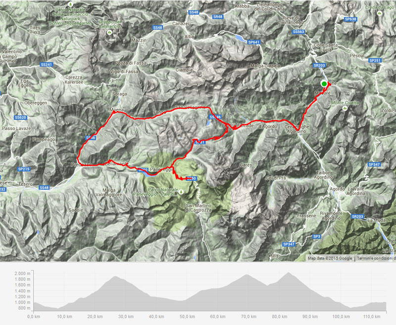 Partenza ore 9.15 direzione sud, Cencenighe, x attaccare dopo 8km il passo S.Pellegrino lungo 18km con i suoi micidiali 3km sopra il 10% ai -6km dalla vetta