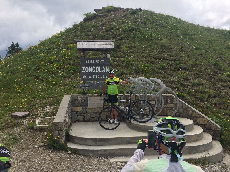 Ieri sera, chissà perché, nessuno aveva voglia di tirare tardi. Alle 10:00 stavamo tutti a letto!!! Lo Zoncolan merita rispetto, non bisogna sprecare energie, servono tutte per arrampicarsi sui suoi irti tornanti. La mattina, fresca e assolata, ci ha accolti lungo le ciclabili che da queste parti costituiscono una rete parallela a quella stradale. Un paradiso dove pedalare in sicurezza. Di ciclabile in ciclabile ci siamo portati ad Ovaro dove una breve sosta bar ci è servita soprattutto per scaricare la tensione e mantenere viva l’adrenalina necessaria alla scalata. Il Prof ha pedalato facile fino ad Ovaro ed ha capito che, oggi, lo Zoncolan se lo sarebbe messo in tasca!!!!! Dopo la foto di rito sotto l’arco di Ovaro io e Michele ci siamo avviati verso la vetta con il nostro solito passo ‘double’. Stessa andatura, fianco a fianco. Che goduria per me!!! Inutile che vi parli delle pendenze, capite da soli che, passato il paese di Liariis, fare 7,5 al 13% medio con quasi 5 km al 14% medio, non è facile per nessuno, figuratevi per noi! Dopo aver visto nei giorni scorsi Michele pedalare con disinvoltura su queste salite carniche, non mi ha sorpreso vederlo salire “en danseuse†sullo Zoncolan, spingendo il 39x30!. Nel frattempo, il resto della comitiva odierna si è ‘sparpagliata’ lungo la salita con Emiliano che ha fatto da Angelo Custode al nostro Prof che oggi ha realizzato l’impresa di conquistare per la seconda volta la salita più dura d’Europa! Complimenti Prof! Tornando a noi, a 2,5 Km dalla Vetta, Michele ha allungato prima lentamente, poi con decisione, andando a conquistare il primato con 2 minuti e 10 secondi di vantaggio. Per quanto mi riguarda ho migliorato di 11 minuti il mio tempo del 2016. Il resto della giornata è cronaca senza grande importanza. La soddisfazione di arrivare in cima allo Zoncolan è stata grande per tutti e l’adrenalina si è sciolta anche il lacrime, per qualcuno. L’obiettivo di questa settimana Carnica è molto positivo, nonostante le previsioni meteo avverse, siamo riusciti quasi sempre a dribblare le gocce di pioggia ed a pedalare, come previsto, 6 giorni su 7. Quasi sempre all’asciutto e solo una volta sotto la pioggia. Che altro dire se non viva la Carnia, Viva Emiliano, Viva la bici, Bravi noi!