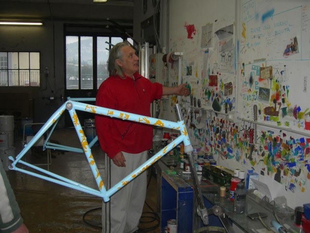 Si diceva di Robin Williams...Dario mi raccontava che attualmente Robin possiede 6 suoi telai e che ogni tanto "rinnova" il suo parco bici, mettendo quelle più "vecchie" all'asta per beneficienza...ovviamente trattandosi di pezzi unici in Usa pochi riescono a farsele sfuggire