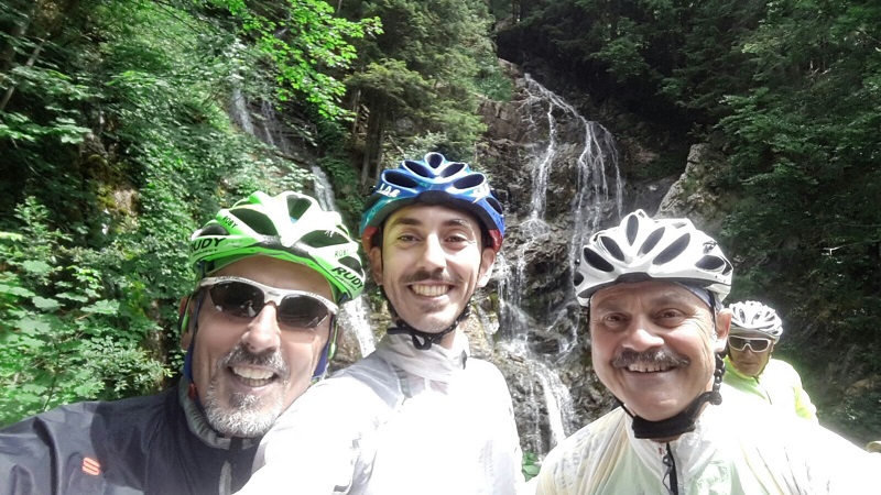 Ieri sera, chissà perché, nessuno aveva voglia di tirare tardi. Alle 10:00 stavamo tutti a letto!!! Lo Zoncolan merita rispetto, non bisogna sprecare energie, servono tutte per arrampicarsi sui suoi irti tornanti. La mattina, fresca e assolata, ci ha accolti lungo le ciclabili che da queste parti costituiscono una rete parallela a quella stradale. Un paradiso dove pedalare in sicurezza. Di ciclabile in ciclabile ci siamo portati ad Ovaro dove una breve sosta bar ci è servita soprattutto per scaricare la tensione e mantenere viva l’adrenalina necessaria alla scalata. Il Prof ha pedalato facile fino ad Ovaro ed ha capito che, oggi, lo Zoncolan se lo sarebbe messo in tasca!!!!! Dopo la foto di rito sotto l’arco di Ovaro io e Michele ci siamo avviati verso la vetta con il nostro solito passo ‘double’. Stessa andatura, fianco a fianco. Che goduria per me!!! Inutile che vi parli delle pendenze, capite da soli che, passato il paese di Liariis, fare 7,5 al 13% medio con quasi 5 km al 14% medio, non è facile per nessuno, figuratevi per noi! Dopo aver visto nei giorni scorsi Michele pedalare con disinvoltura su queste salite carniche, non mi ha sorpreso vederlo salire “en danseuse†sullo Zoncolan, spingendo il 39x30!. Nel frattempo, il resto della comitiva odierna si è ‘sparpagliata’ lungo la salita con Emiliano che ha fatto da Angelo Custode al nostro Prof che oggi ha realizzato l’impresa di conquistare per la seconda volta la salita più dura d’Europa! Complimenti Prof! Tornando a noi, a 2,5 Km dalla Vetta, Michele ha allungato prima lentamente, poi con decisione, andando a conquistare il primato con 2 minuti e 10 secondi di vantaggio. Per quanto mi riguarda ho migliorato di 11 minuti il mio tempo del 2016. Il resto della giornata è cronaca senza grande importanza. La soddisfazione di arrivare in cima allo Zoncolan è stata grande per tutti e l’adrenalina si è sciolta anche il lacrime, per qualcuno. L’obiettivo di questa settimana Carnica è molto positivo, nonostante le previsioni meteo avverse, siamo riusciti quasi sempre a dribblare le gocce di pioggia ed a pedalare, come previsto, 6 giorni su 7. Quasi sempre all’asciutto e solo una volta sotto la pioggia. Che altro dire se non viva la Carnia, Viva Emiliano, Viva la bici, Bravi noi!