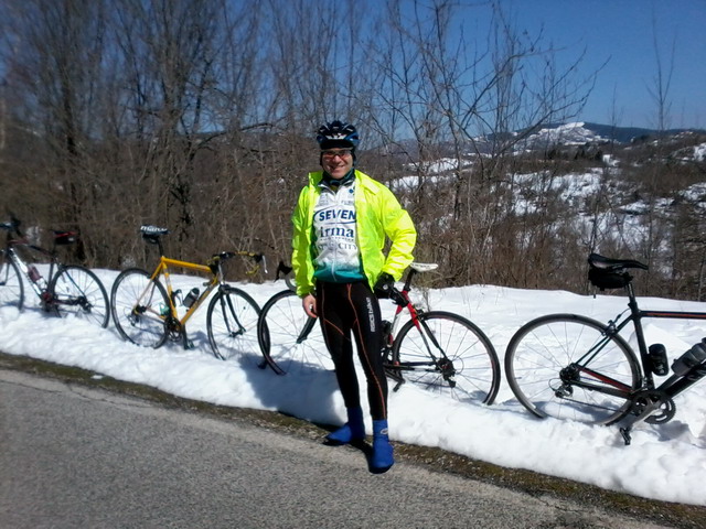In ogni caso, tutti i partecipanti alla..."randonneve" :mrgreen: :mrgreen: hanno dimostrato di reggere bene fino alla fine, anche quando il professore, dopo aver smoccolato tutto il calendario in salita :? , finalmente sul terreno suo (via della neve) si prendeva le sue meritate soddisfazioni, peraltro dimostrando che ha ancora il "fondo" che evidentemente gli deriva da quello scudetto orgogliosamente appiccicato sulla bici 8-)