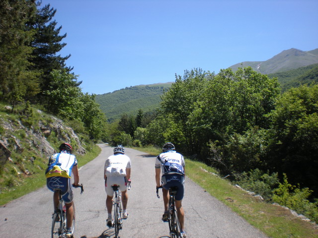 Svolta a sinistra e salita leggerissima al 4-5% verso la Cimetta, poi altrettanti x scendere a Guercino, sosta fontana e 18km al 7-8% fino ai 1800m slm di Campo Catino