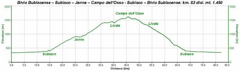Come si può notare, la salita da Subiaco a Campo dell'Osso passando per Jenne è lunga circa 30 km. :shock: , divisa in tre tronconi da brevi tratti in cui si rifiata (addirittura, un tratto è in leggera discesa).