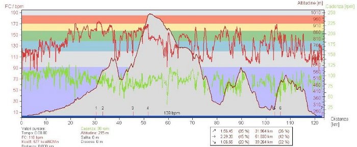 Dist: 122,9 Km; Bpm: 139/175; Vel: 23,9 Km\h; Cad: 85; Disliv.: 1895m