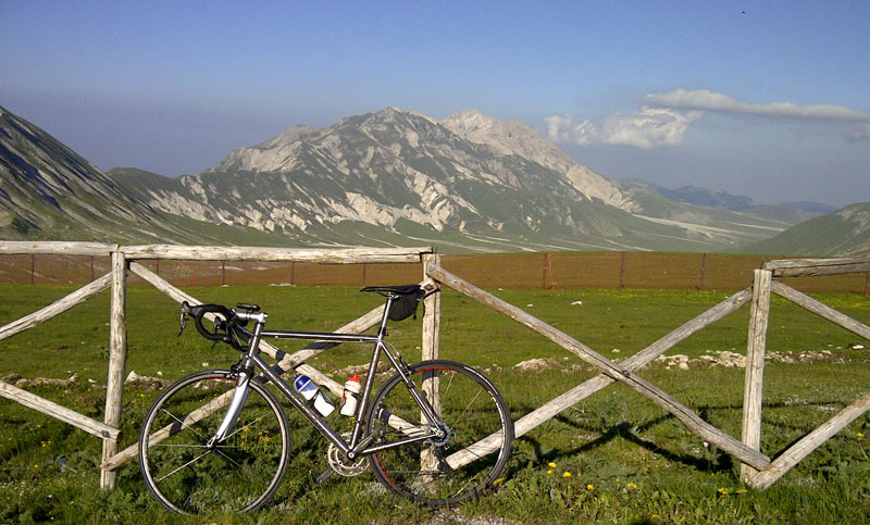 stamattina mentre mi riposavo cercando di alleviare il dolore della mia fastidiosissima contrattura mentre raccoglievo le patate :mrgreen: ripensavo ai posti e alle fotografie impresse nella mia mente.tutto è cominciato alle 5.15 di ieri quando la mia sveglia decideva di darmi due destri......ufff....ma chi me lo fa fare penso,e mentre lo dico una manata di acqua gelata si schianta sulla mia faccia e allora mi sveglio e ricordo quale è la missione di oggi,taaaanttaaaaa salita,e allora via,colazione,vestizione e...partenzazione :D raggiungo assergi passando sopra l'aquila e penso a tante cose belle e brutte ma questa è un'altra storia,arrivo all'appuntamento che mi ricorda l'ultima volta che siamo stati quà,esattamente un anno esatto,il mercoledì dopo la sportfull :o aspetto tutto il resto della compagnia compreso l'onniritardatario dankan :twisted: ;) e dopo i saluti e gli abbracci si parte per 2 km di discesa e subito prima sosta,random si deve spogliare :roll: riprendiamo per i circa 10-12 km in salita molto pedalabili e poi i due di discesa che ci portano al passo delle capannelle (altri bei ricordi) breve consulto.....(pipì :oops: ) e via in discesa di nuovo fino ad ortolano sosta fontanella e foto ricordo alla casetta di paolo,via direzione teramo ma......fino al bivio di prati di tivo...porca zozza salita di 18? km molto irregolare che ci porta di nuovo ai 1300 mt del piazzale con il gran sasso che si può toccare,panini,birretta,caffè e via percorso inverso,ma co i tanti km di salita pedalabile fino di nuovo al passo delle capannalle (e di nuovo sosta casetta di paolo complice la adiacente fontanella) poi i 2 km duri fino allo scollinamento prima dei 12 di discesa fino quasi alle macchine non prima dei 1700 mt duri per raggiungere il parcheggio,ma adesso mega sosta andrea prandi con l'amico direzione casa il capitano dopo un breve consulto con la sua bici decide di aspettarci all'ombra,robocop dopo la terza birra verso viterbo e noi tre poveri scemi rimasti soli per i 22,5 km di salita che ci separano da campo imperatore,il caldo si fà subito sentire e i 12,5 km più due di discesa fino al bivio sono un pò duretti pure perchè dopo 140 km e 3000 e passa metri di disl. con il pensiero di 10 km massacranti(che poi alla fine sono 4,5) non puoi fare una passeggiata ma impostiamo un passo lucignolata e saliamo ognuno del proprio passo,primo dankan poi io e poco dopo random che ha pagato il pezzo più duro ma pressappoco tutti insieme foto sorrisi complimenti e via verso le macchine per una bella doccia(da campo) e una bella cena sempre a sghignazzare di tutto e su tutti.