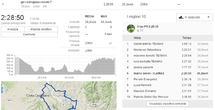 Eppure so sicuro che se riuscissi a scaricare l' uscita di 2 mesi fa (2:40' dal garage mio,con ripetute) qualcun'altro mi metto dietro. Io non sapevo dell' esistenza di quel segmento!