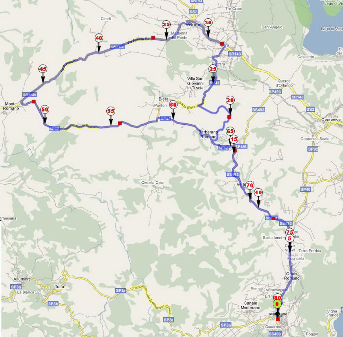 Il percorso sarà il seguente: Manziana - Barbarano - Vetralla - Monteromano - Barbarano - Manziana. Faremo anche una piccola deviazione per il ponte di Blera (bellissimo panorama sulle gole del Biedano 8-) ).