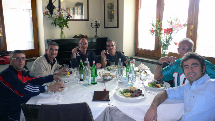 Il clou, come previsto, c'è stato dopo il giro ;) ;) : a tavola in trattoria (dove ci ha raggiunto Daniele in auto), come da tradizione per festeggiare la fine della stagione agonistica; siamo stati più tempo seduti a tavola che in bici :lol: :lol: :lol: